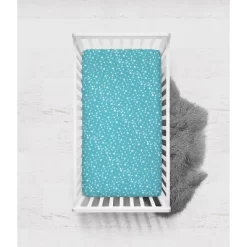 Bacati – Aqua Stars 100 Percent Cotton Universal Baby US Standard Crib Or Toddler Bed Fitted Sheet