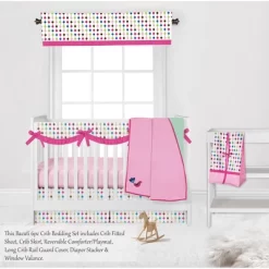 Bacati – Botanical Floral Birds Pink Multicolor 6 Pc Crib Bedding Set With Long Rail Guard Cover