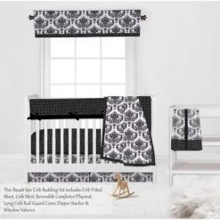 Bacati – Classic Damask Black/Grey/White 6 Pc Crib Bedding Set With Long Rail Guard Cover