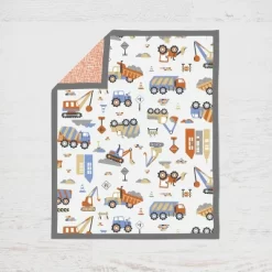 Bacati – Construction Yellow Orange Blue Gray 6 Pc Crib Bedding Set With Long Rail Guard Cover