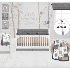 Bacati – Owls In The Woods Beige/Gray 10 Pc Crib Bedding Set With Long Rail Guard Cover