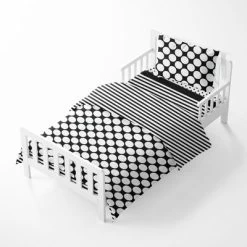 Bacati – Classic Damask Black/Grey/White 6 Pc Crib Bedding Set With Long Rail Guard Cover