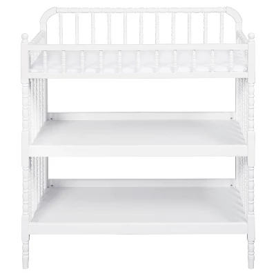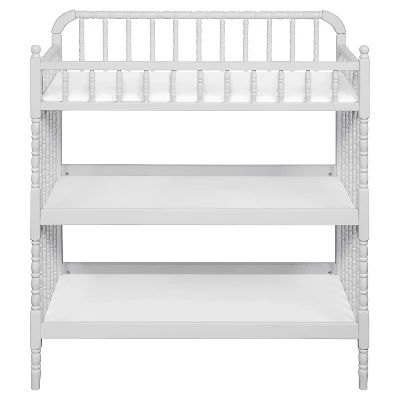 Delight in traditional beauty with DaVinci’s Jenny Lind Changing Table. Intricate spindle posts deliver classic grace from top to toe, for a perfect pairing with the Jenny Lind Crib. Spacious, open shelves keep diapers and lotions within easy reach for convenient changings. Coordinates with the Jenny Lind 3-in-1 Convertible Crib.