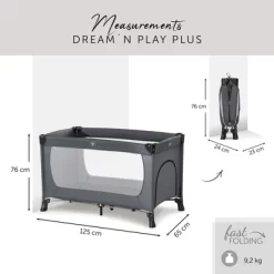 - AGE RANGE: Dream’n Play versatile travel cot for babies and toddlers from birth up to 33 lbs