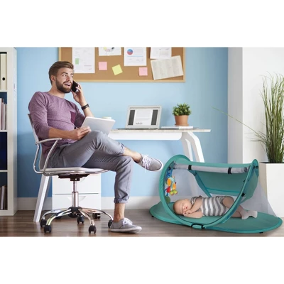 KidCo PeaPod Camp Lightweight Pop Up Child Portable Travel Bed Tent Extension With Retractable Sun Shade, Storage Pocket, And Carry Bag