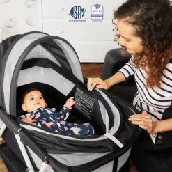 Delta Children TravelMate Compact Fold Bassinet – Gray Tweed