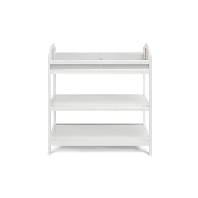 The coordinating, Suite Bebe Brees changing table is the easiest and safest place to change your baby. Made with the same quality and design of the Suite Bebe Brees crib, it’s the perfect addition to your nursery. Designed with two open storage shelves for those diapers and baby necessities. However, when you no longer need it as a changing table, it’s the perfect shelf for your child’s toys and books. And even later for yourself, it’s the perfect bar cart!